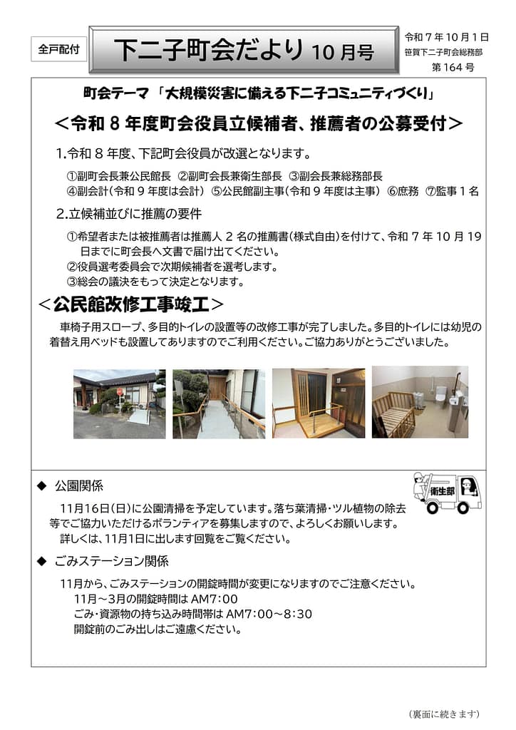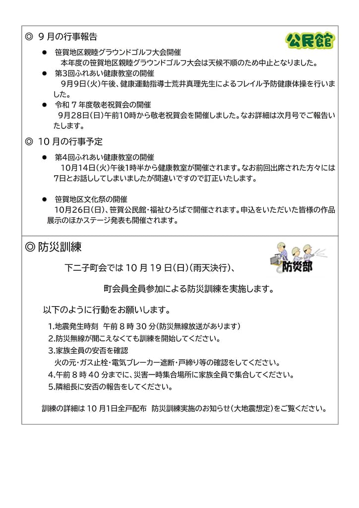 令和7年度下二子町会だより10月号