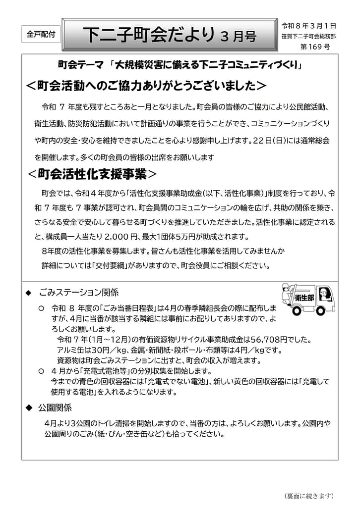 「大規模災害に備える下二子コミュニティづくり」 笹賀下二子町会コミュニティサイト